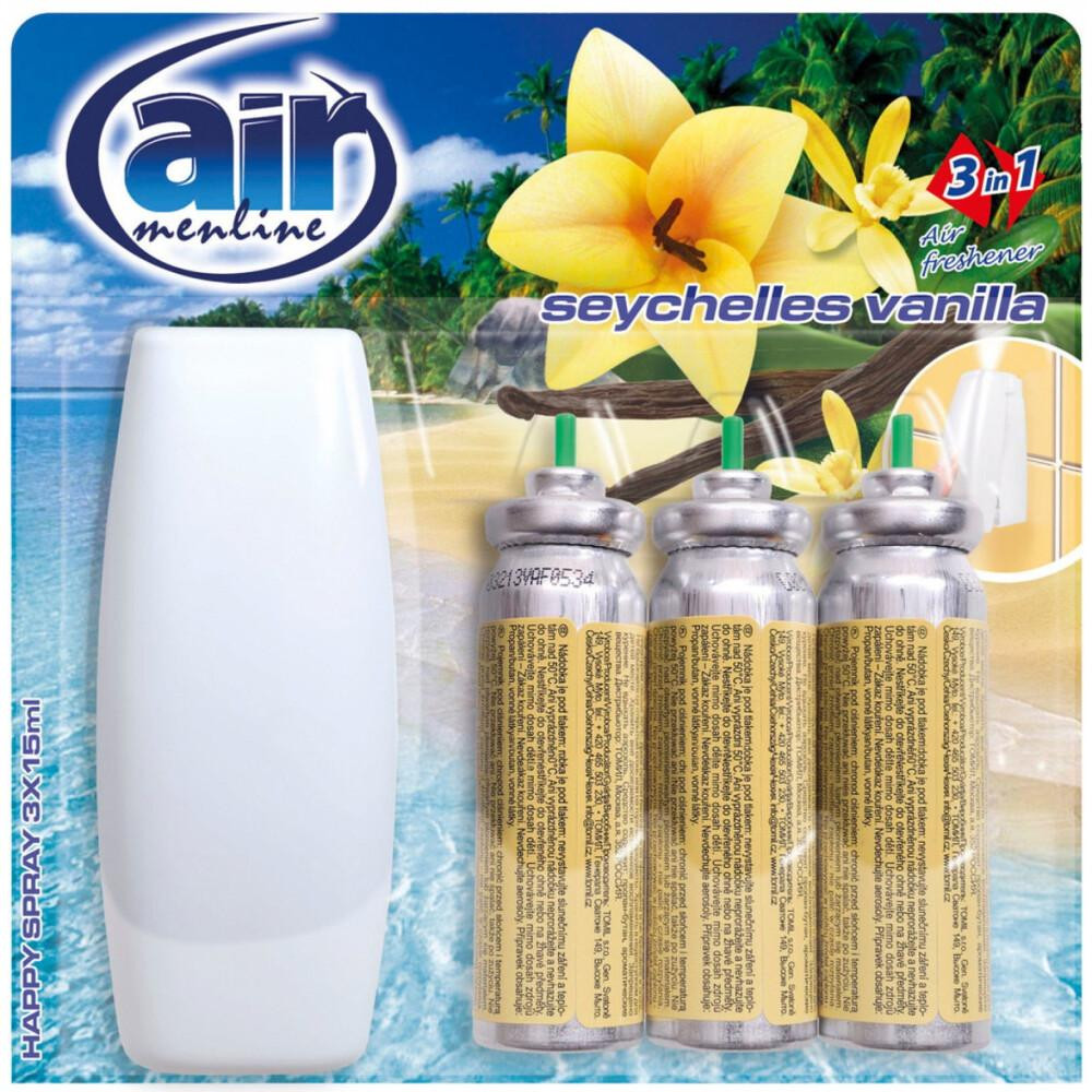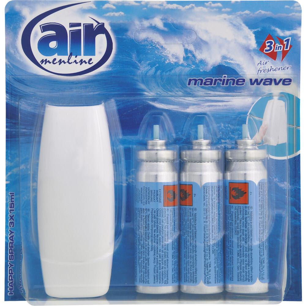 AIR 3V1 SPREJ NÁHRADNÉ NÁPLNE 3X15 ML Rozprašovač Menline spray neutralizuje zápach a zanecháva sviežu vôňu.