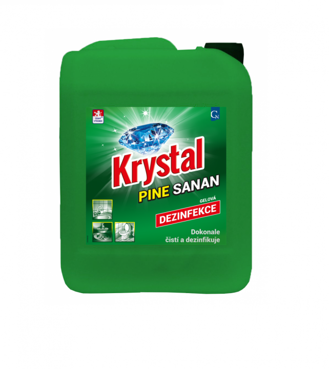 Krystal PINE SANAN je vysoko účinný čistiaci prostriedok s dezinfekčným (zničí všetky baktérie) a bieliacim účinkom. Synergický účinok zmesi tenzidov a prísad s bieliacimi vlastnosťami predurčuje tento výrobok na široké použitie. Je vhodný najmä na záchodové misy a pisoáry, umývadlá, vane, drezy, podlahy, kachličky, pracovné plochy a odpady.