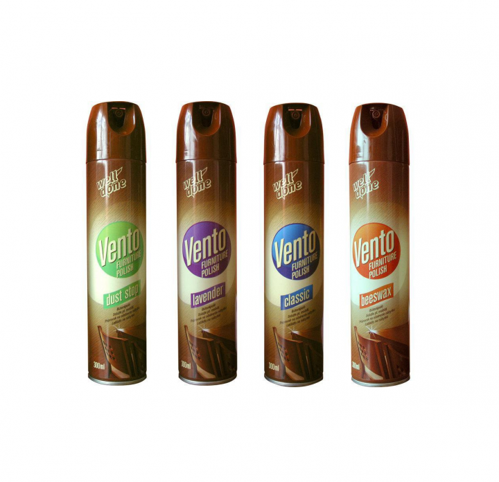 Vento prípravok na ošetrenie nábytku Classic, s vôňou vanilky, levandule alebo Agátu . Ľahko čistí, ošetruje povrch nábytkov, ktoré sa stanú lesklými, chráni pred znečistením. Vďaka účinnej látke odpudzujúcej prach budú povrchy po každom použití lesknúť.