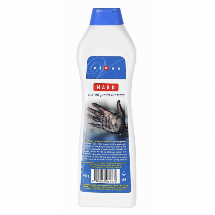 Tekutá umývacia pasta na ruky Vion HARD obsahuje prírodné abrazivo - jemne mletý vápenec.