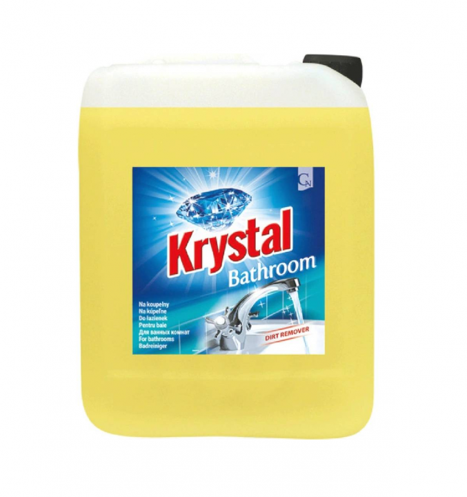 Prostriedok vhodný na vodovodné batérie, vane, umývadlá, sprchové kúty (vrátane zásten), dlažbu a obklady. Čistič je silný proti vodnému kameňu a hrdzi, zanecháva vysoký lesk. Je použiteľný na všetky materiály odolné kyselinám. Vysoká koncentrácia aktívnych látok a jeho konzistencia predurčuje Kryštál na kúpeľne na jednoduché odstraňovanie väčších nánosov vodného kameňa, silnejších vrstiev mechanických nečistôt a na zabezpečenie vysokého štandardu lesku. Jeho receptúra ​​a kvalita vstupných surovín poskytuje pracovný komfort s mimoriadne koncentrovaným prostriedkom, ktorý je príjemne parfumovaný vôňou višne.