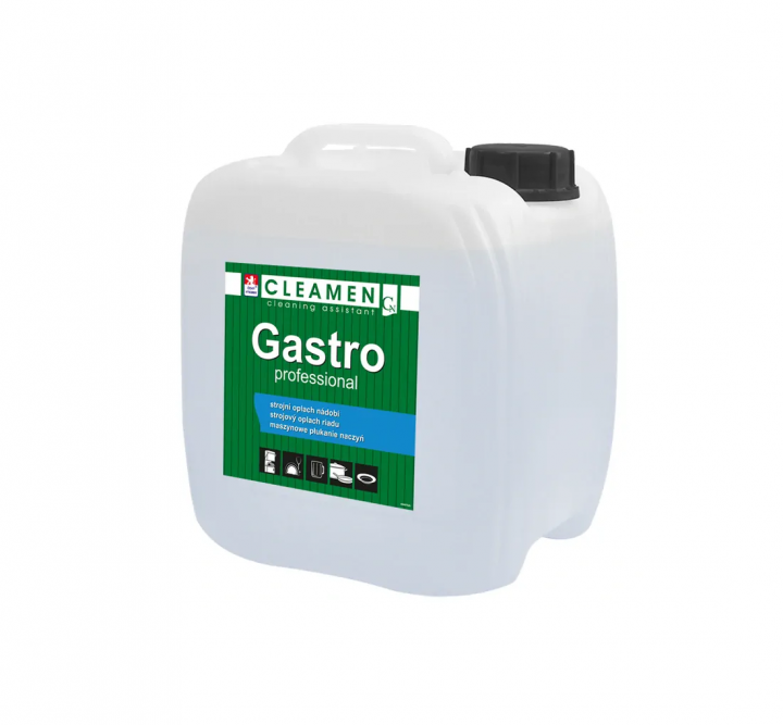CLEAMEN na strojný oplach riadu z radu GASTRO PROFESSIONAL je tekutý vysokokoncentrovaný prémiový oplachový a leštiaci produkt pre profesionálne umývačky riadu a skla.