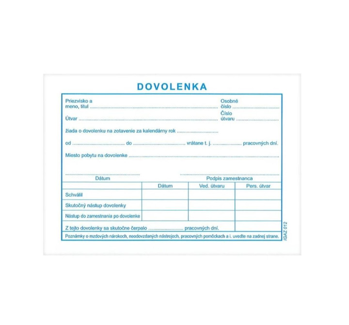 Tlačivo Dovolenka A6, 100 listov